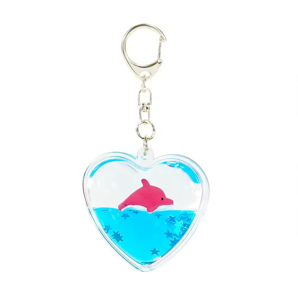 Heart Shape Keychain with Liquid and Floating Dolphin
